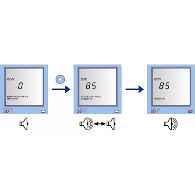 • 3 скорости увеличения «диагностического тока» в зависимости от предполагаемого состояния пульпы исследуемого зуба;