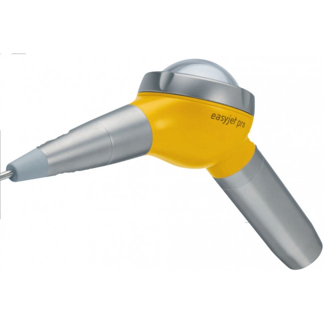EasyJet Pro — устройство для ежедневного использования, оснащено легко открываемой крышкой резервуара для порошка и легко фиксируемым поворотным соплом наконечника. Полностью стерилизуется, имеет переднюю силиконовую накладку. Продуманное распределение порошка в резервуаре и новый дизайн сопла обеспечивают постоянный и мощный поток порошка.