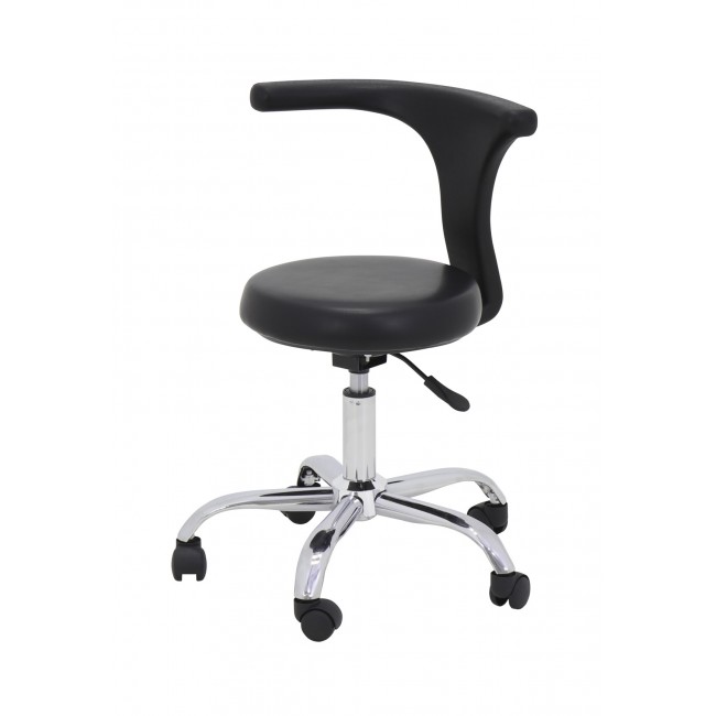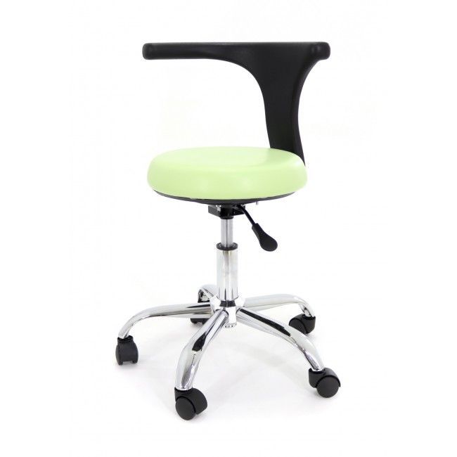Стул имеет возможность регулировки высоты - вы можете менять ее в зависимости от проводимой процедуры. Стул установлен на пятилучье, которое делает всю конструкцию устойчивой и надежной. Небольшие колесики позволят передвигать его туда, куда вам необходимо, и при этом не царапают пол, обеспечивая мягкое и плавное движение.