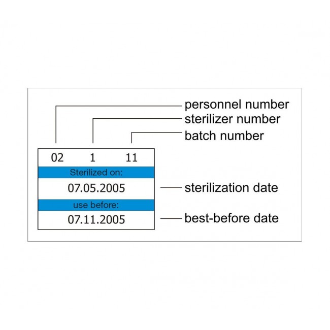 Обозначение. Упаковки со стерильными материалами, которые полностью пригодны, в дальнейшем идентифицируются по специальным прикреплённым к ним наклейкам. При этом сохранность стерильного хранения гарантируется правильной процедурой. Если с помощью шариковой ручки промаркировать упаковку, то может возникнуть риск нарушения режима стерильности или механического повреждения упаковки. При использовании маркера или фломастера может возникнуть микроперфорационное повреждение поверхности упаковки в том месте, где она вступает в химическую реакцию с активными составляющими красящего вещества.