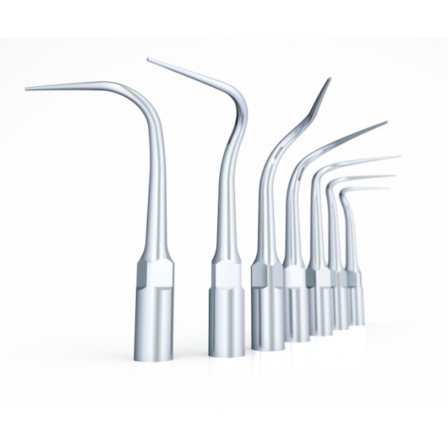 Идеальный ультразвуковой скалер для парадонтологического лечения и снятия зубных отложений, совмещающий в себе современные технологии, дизайн и эргономику. Технология движения кончика насадки по эллипсоидной траектории позволяет проводить процедуры абсолютно безболезненно для пациента, а титановый сплав насадок не наносит микро-царапин на поверхности эмали, что препятствует бактериальному росту.
