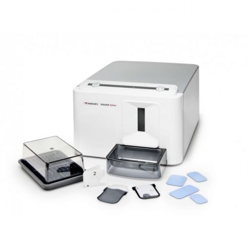 Система может считывать пластины со снимками четырех стандартных форматов (0, 1, 2 и 3), что позволяет сделать правильный выбор для любого пациента и любой диагностической цели. Датчики выполнены в виде пластин и легко позиционируются во рту пациента аналогично обычной рентгеновской пленке. Процесс считывания информации с пластин максимально автоматизирован. Время считывания – 4 секунды. Digora Optime автоматически определяет размер датчика при сканировании. При сканировании информация с датчика автоматически стирается. Датчик готов для дальнейшего использования.