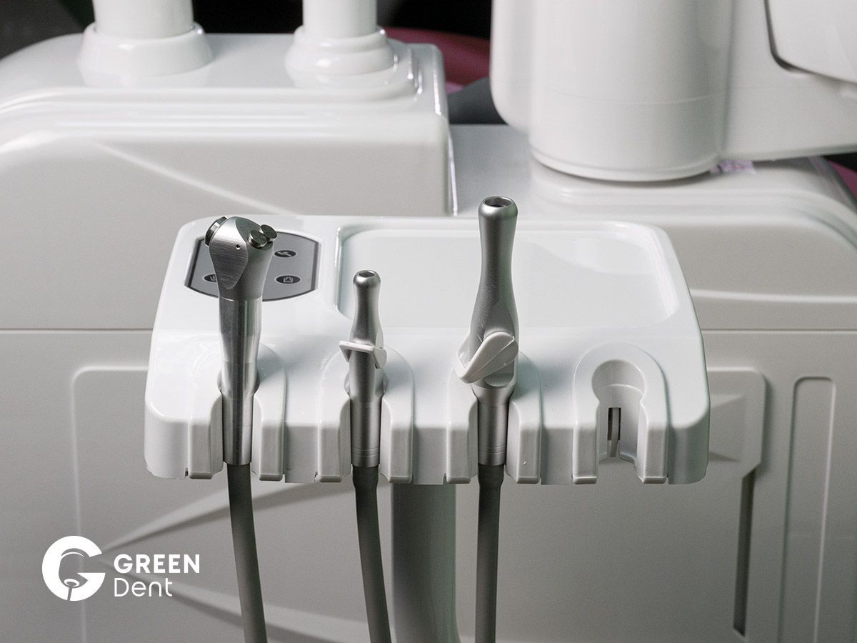 - Модуль ассистента на 4 инструмента с пылесосом и слюноотсосом, пистолетом вода-воздух и свободным местом, для полимеризационной лампы или интраоральной камеры.