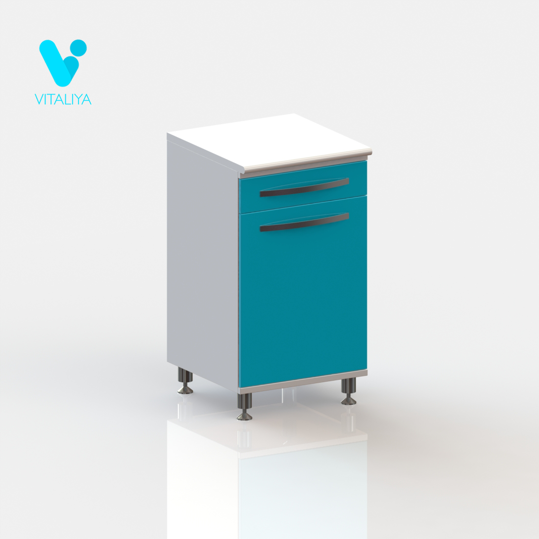 - Тумба изготовлена на хромированных ножках, высотой 100 мм с регулируемыми опорами.