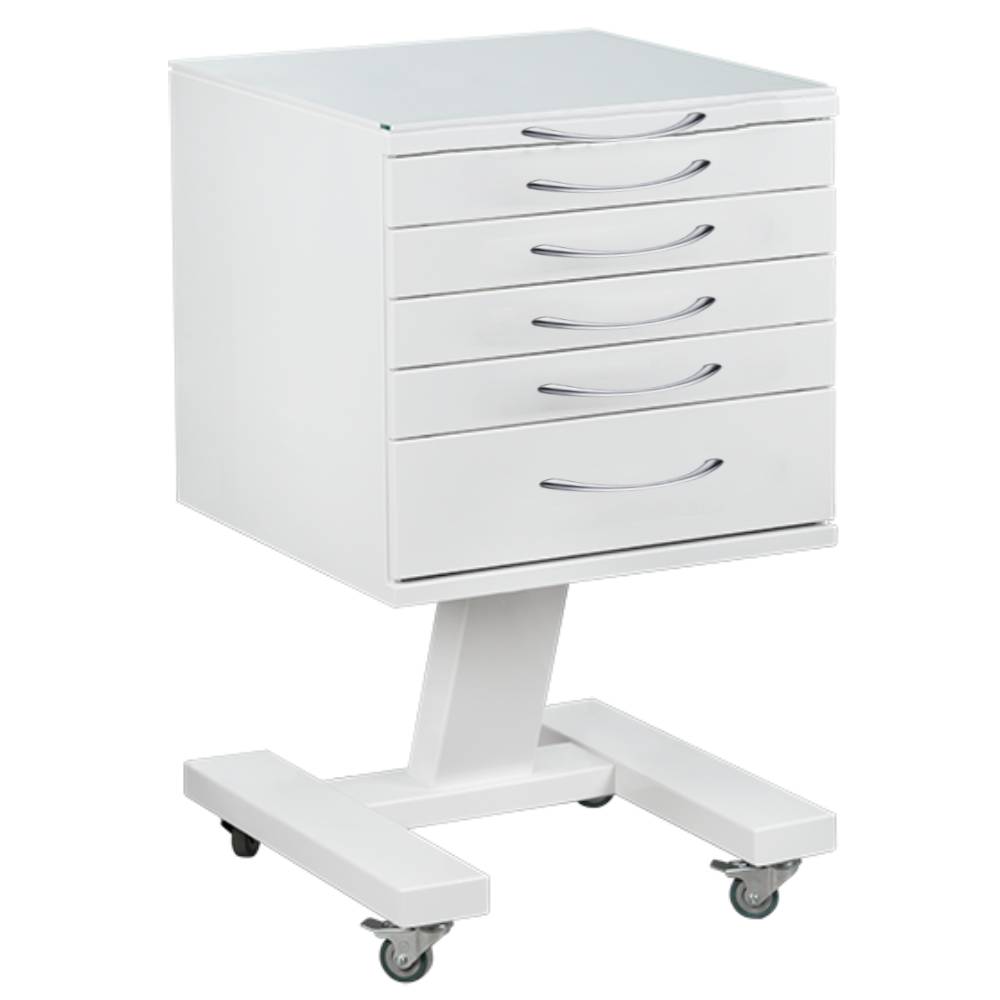 5 выдвижных ящиков. Колёса 50 мм, 2 колеса с тормозом.