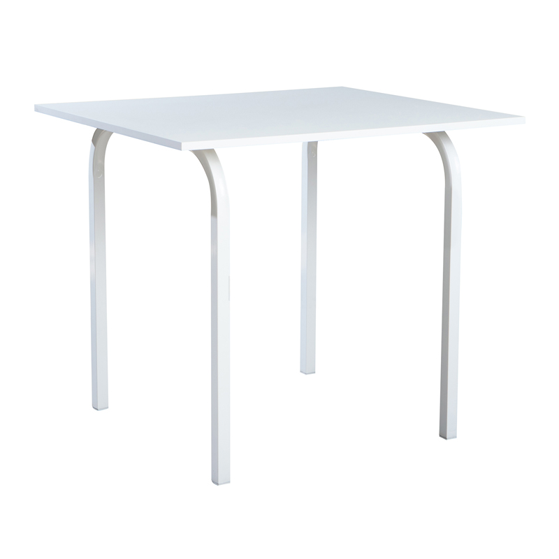 Столешница сделана из ЛДСП толщиной 16мм, с кромкой ПВХ. Металлический каркас изготовлен из стальной трубы квадратного сечения окрашенный полимерно-порошковой краской белого цвета. Возможно изготовление любых габаритных размеров.
