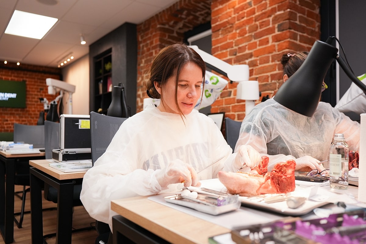 В течение двух дней участники этого курса знакомились с новыми методами устранения пародонтальных карманов и отрабатывали навыки по базовым хирургическим манипуляциям.
