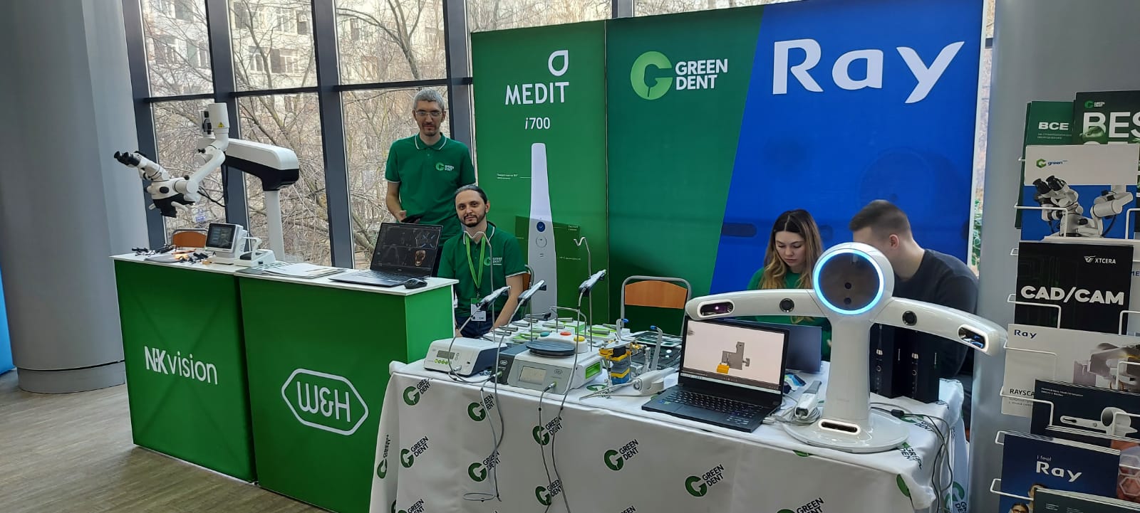 Компания GREEN DENT представила последние новинки стоматологического оборудования, в числе которого: 3D-сканер лица RAYFace, интраоральный сканер Medit, совершенные оптические приборы – микроскоп GreenMED C-Clear и бинокуляры NK Vision, а также обсуждаемая CAD/CAM-технология от немецкой компании SAM – лицевая дуга AxioPrisa.